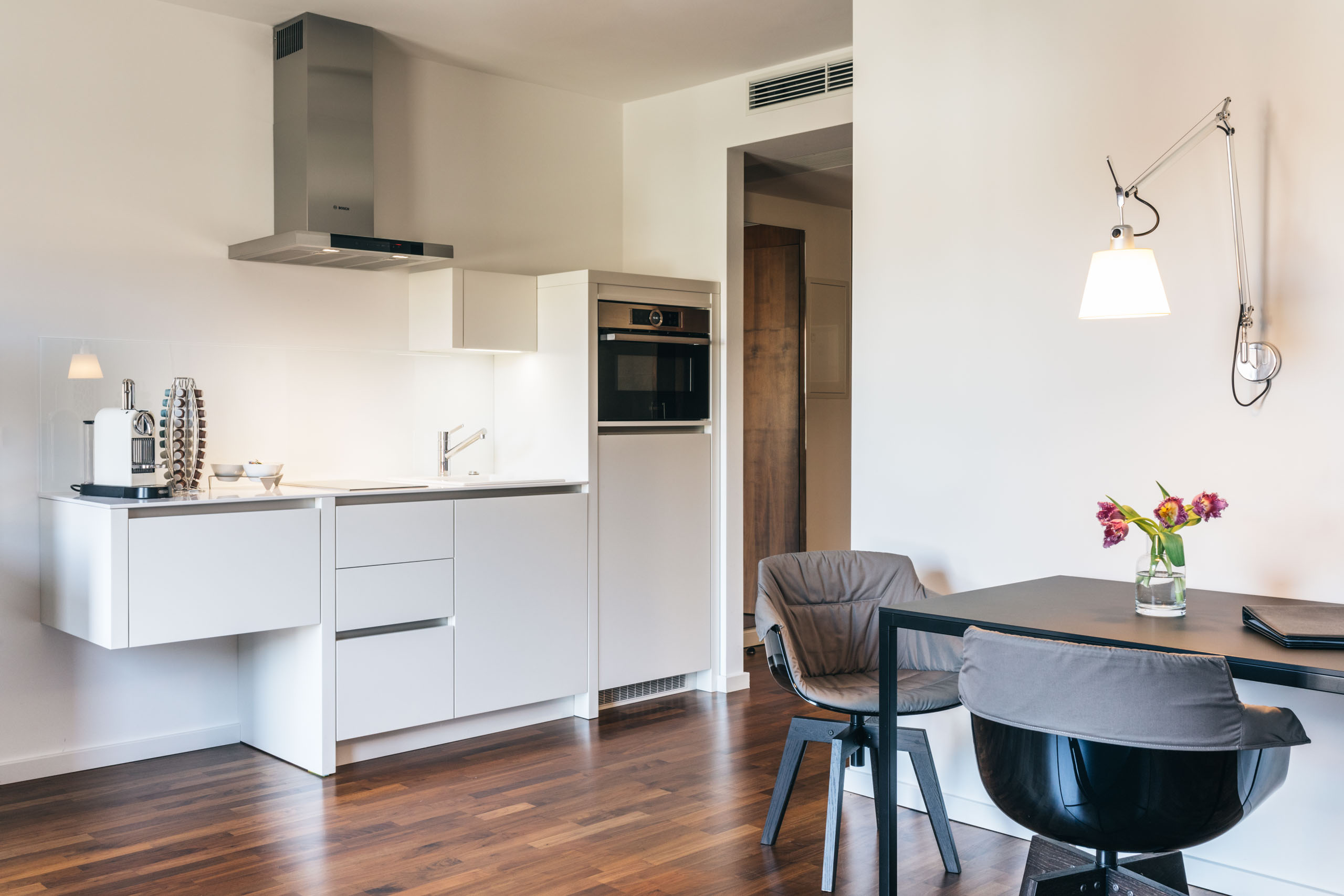 Haupthaus und Apartementhaus verfügen jeweils über einen Aufzug.